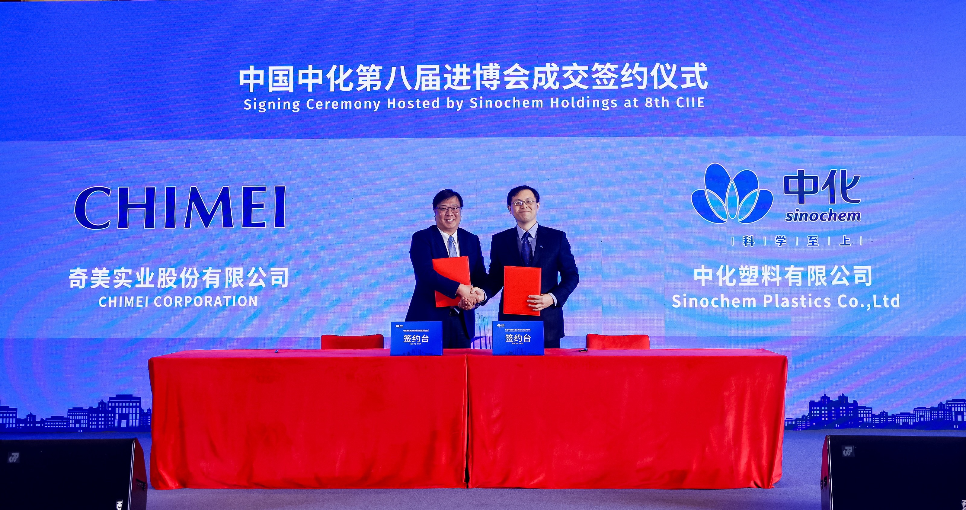 2025年11月5日,第八届中国国际进口博览会在上海国家会展中心盛大启幕。作为进博会"全勤生",中化塑料连续八年积极参与这一国际经贸盛会,并与重要战略合作伙伴--奇美实业股份有限公司成功签署2026年度合作意向协议。此举标志着双方在三十余年精诚合作的基础上,推动工程塑料领域战略协作再上新台阶。