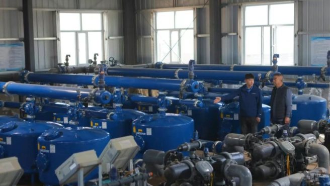 在土默特右旗海子乡的苗六泉农场,中化农业MAP通过“蓄水-沉淀-过滤”等形式,将清澈的黄河水精准输送到每粒种子,将大水全田漫灌变为一个个由滴灌形成的包围在根系周围的湿润球。同时,通过选择耐盐碱种子和作物,结合精准水盐调控、窄行距播种等技术措施,实现精细化种植管理。2024年苗六泉农场生产效益显著提升,对比地块进行高标准农田改造之前,粮食产量提高63%。