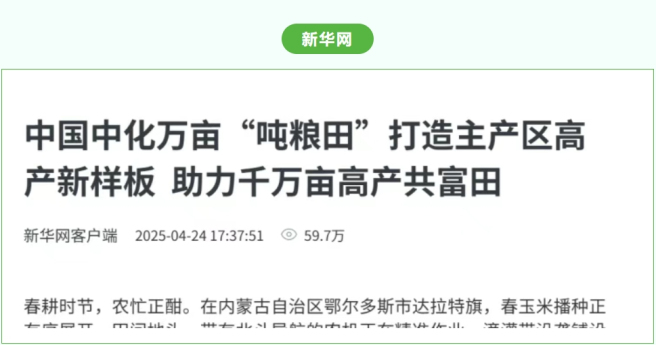 4月22日至23日,“打造现代农业样板 中化农业MAP助力千万亩吨粮田丰产——2025年中国中化媒体开放日”期间,多家媒体走进内蒙古达拉特旗、土默特右旗等地,见证中国中化旗下中化农业MAP在当地打造的现代农业样板的显著成效。