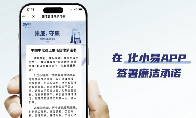 从管理层至基层员工,从生产基地到科研院所,全体中化人线上线下共同签署廉洁自律承诺书。活动启动以来,已有逾8万名员工通过化小易APP完成线上签署。