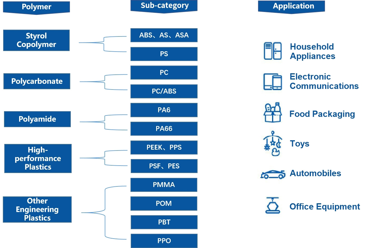 Main products: plastic raw materials such as ABS, PS, PC, PA, PEEK, PS, etc applied in the sector of household electric appliance, electronics, automobile, office equipment, and so on. Sinochem Plastics has developed long term strategic cooperation with many large producers of engineering plastics at home and abroad.